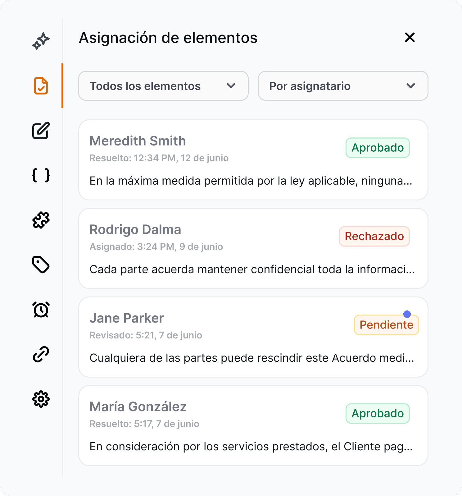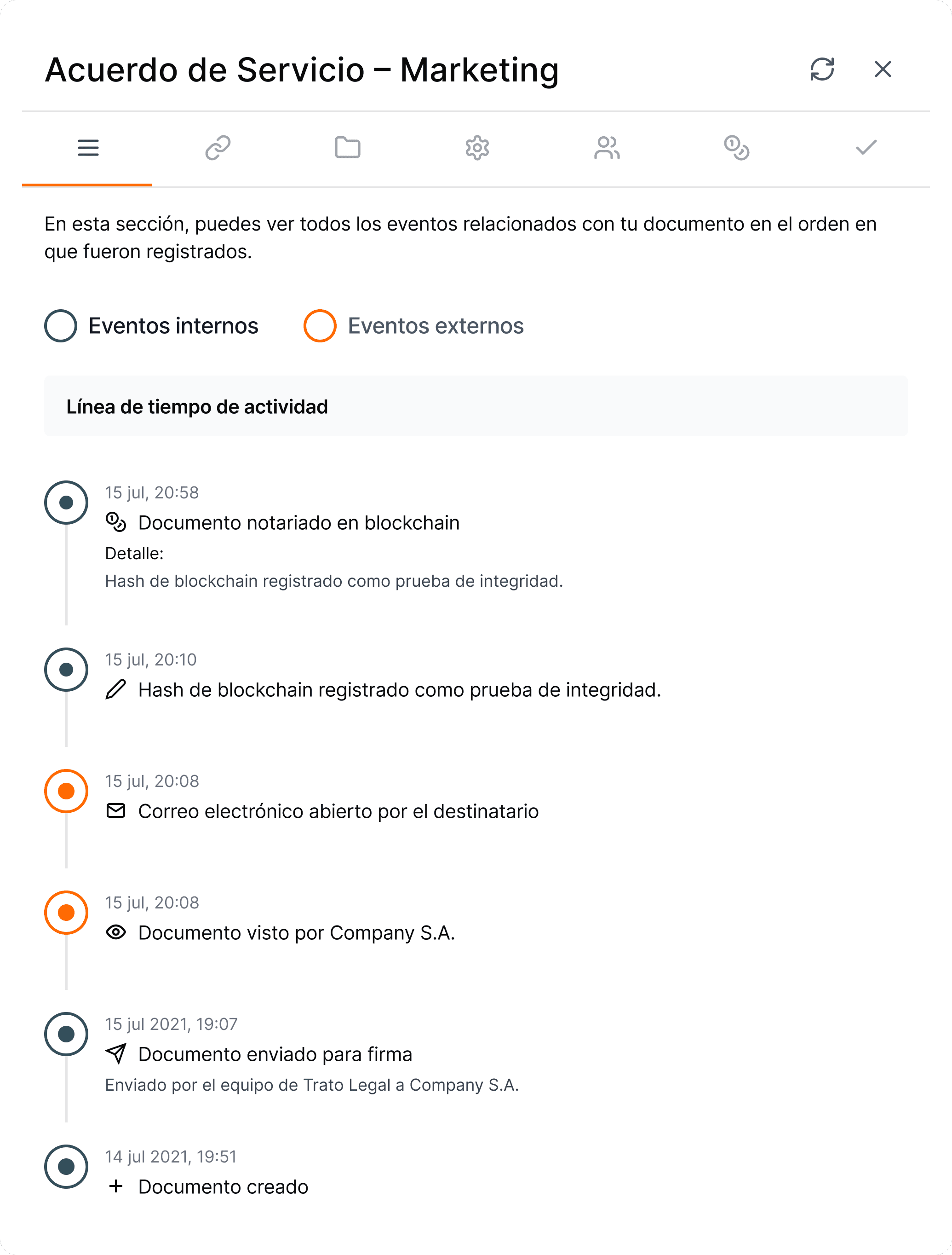 Monitorea cada paso de tus contratos en tiempo real. Desde las aprobaciones internas hasta las firmas externas, mantiene un registro claro y auditable de toda la actividad del documento.
