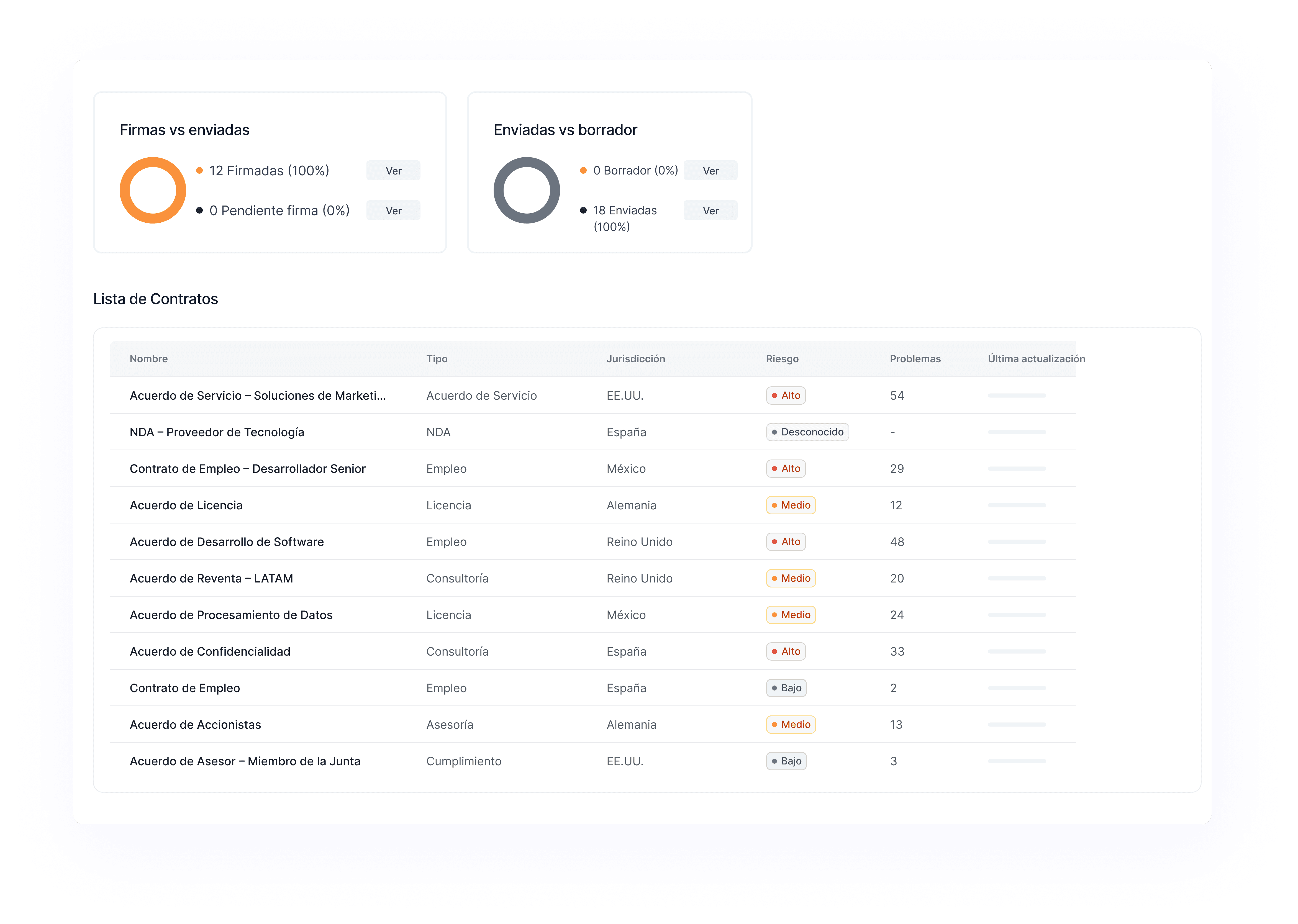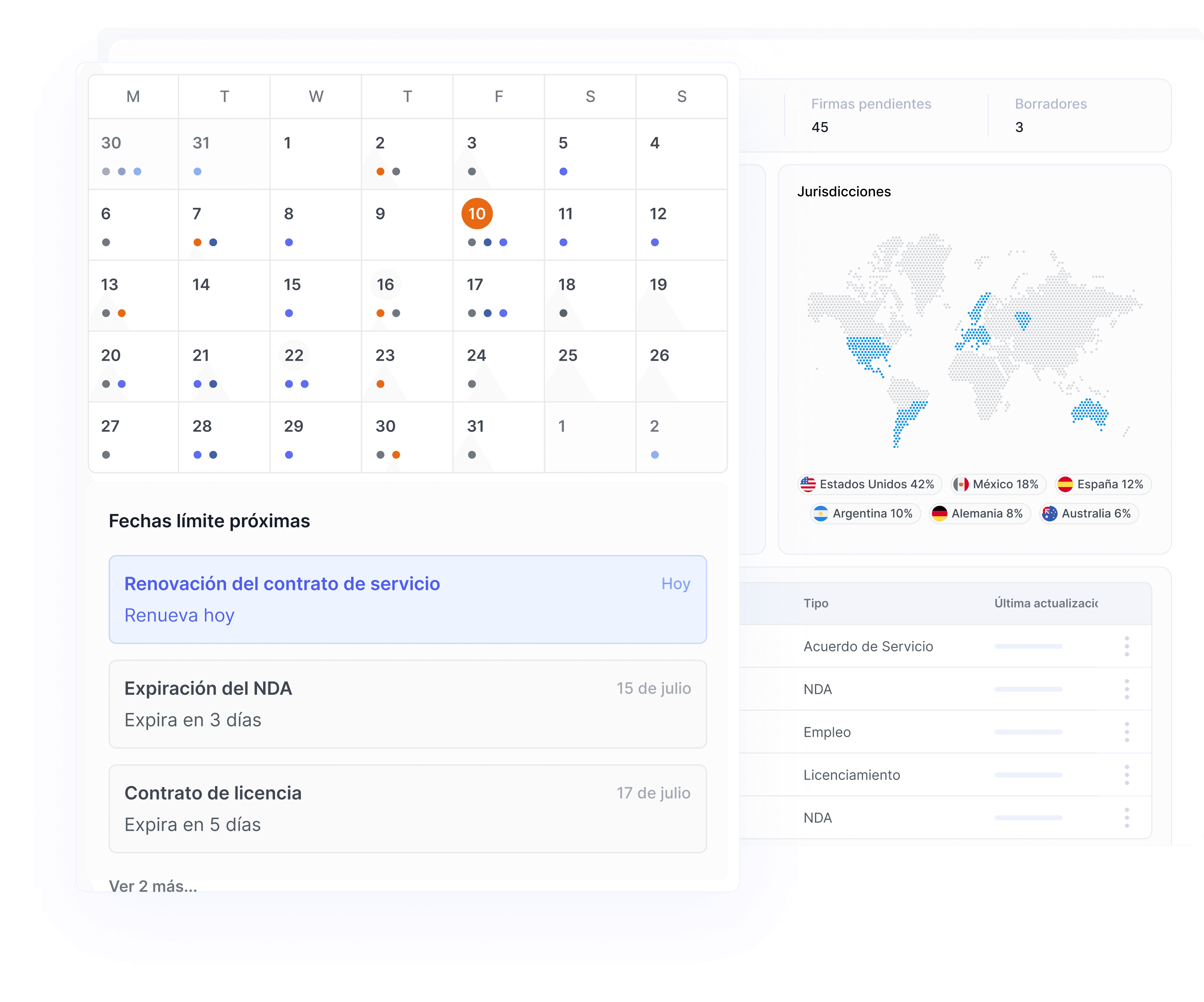 Obtén una visión general en tiempo real de sus contratos, plazos próximos y actividad clave, todo en un solo lugar para mantenerse al tanto y evitar sorpresas.
